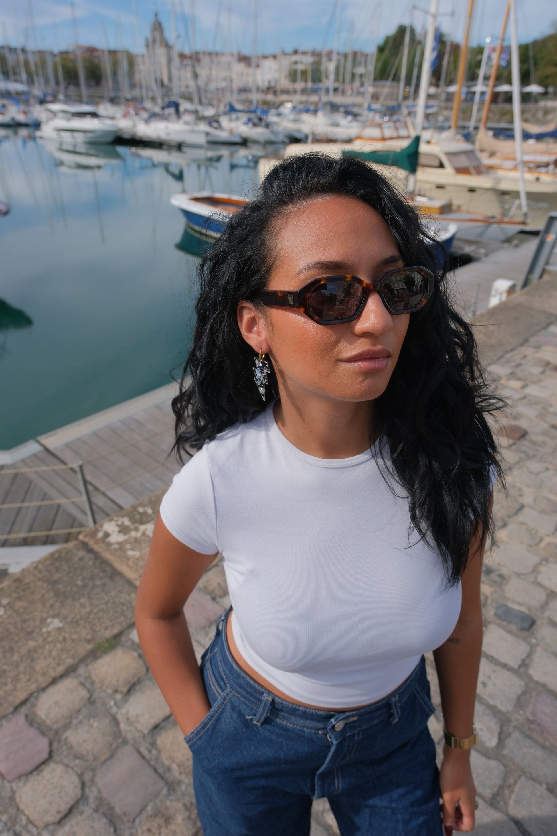 Avec leur silhouette affirmée et leur finition terrazzo scintillante, ces créoles sont idéales pour briller en soirée ou donner du caractère à vos tenues.