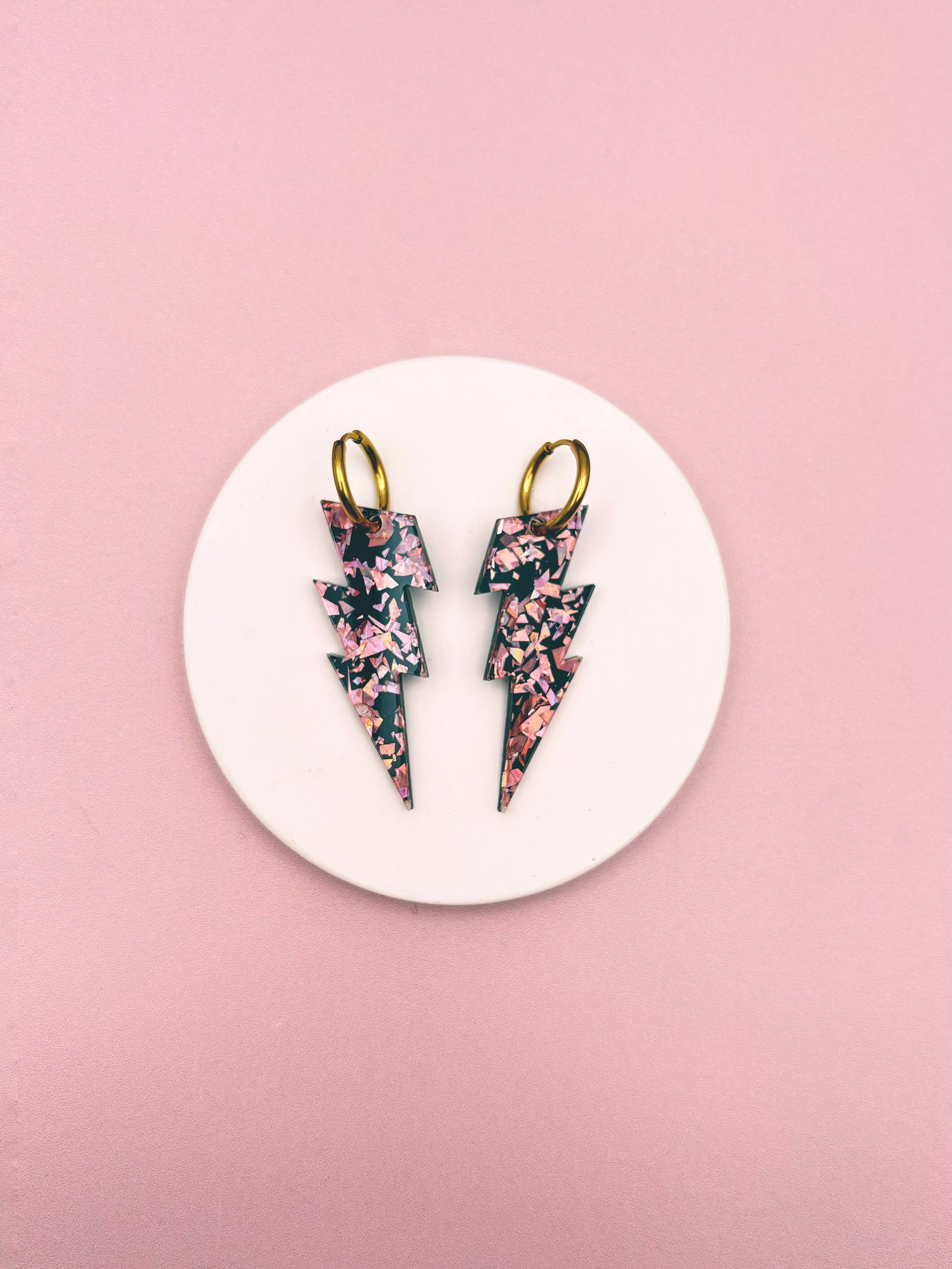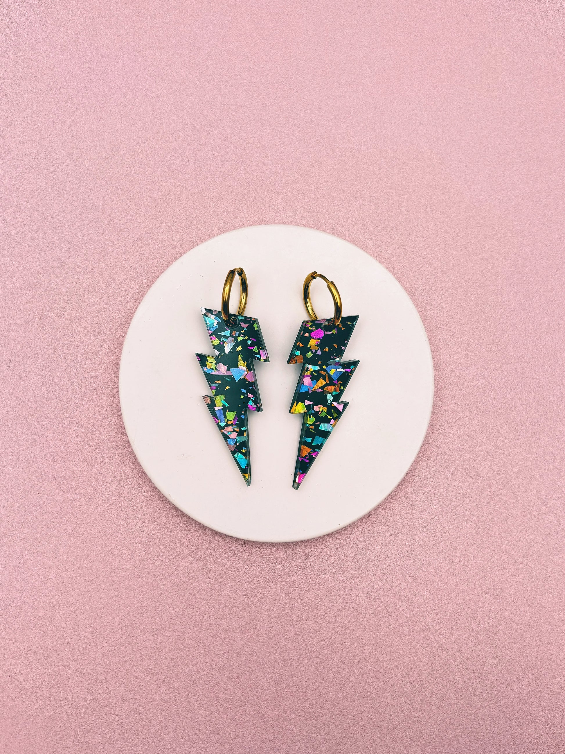 ⚡ Boucles d’oreilles Grands Éclairs Terrazzo Pailleté ⚡