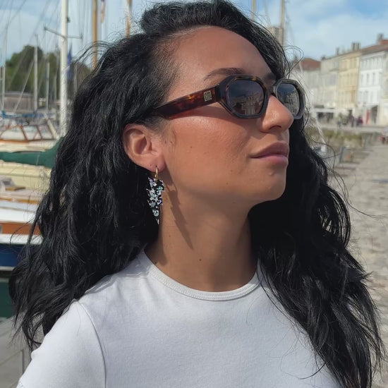 Matière : Acrylique avec créoles en acier inoxydable doré à l'or 18 carats