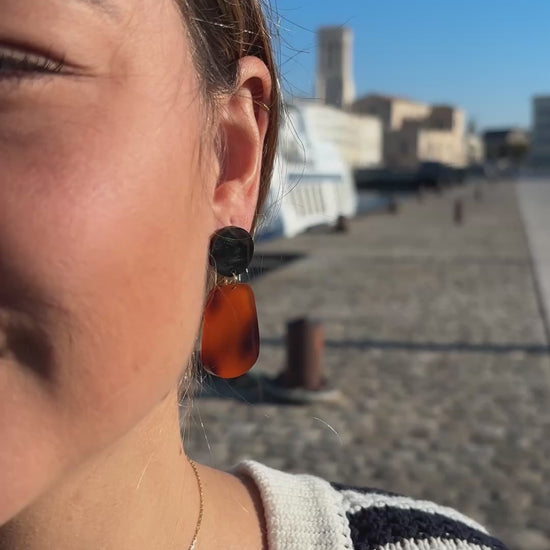 Un modèle élégant et graphique qui associe la chaleur de l’écaille de tortue à un haut contrastant noir ou terracotta.