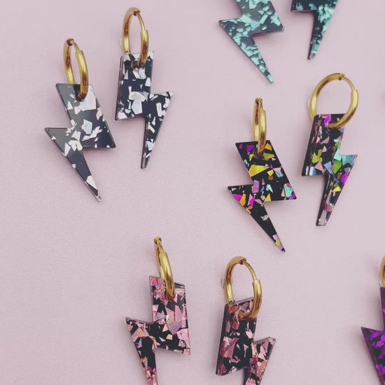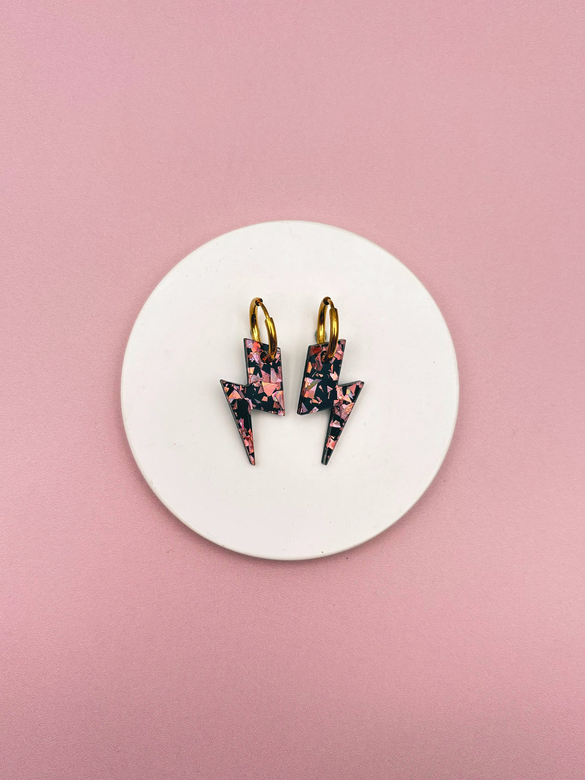 ⚡ Boucles d’oreilles Éclairs Terrazzo Pailleté ⚡