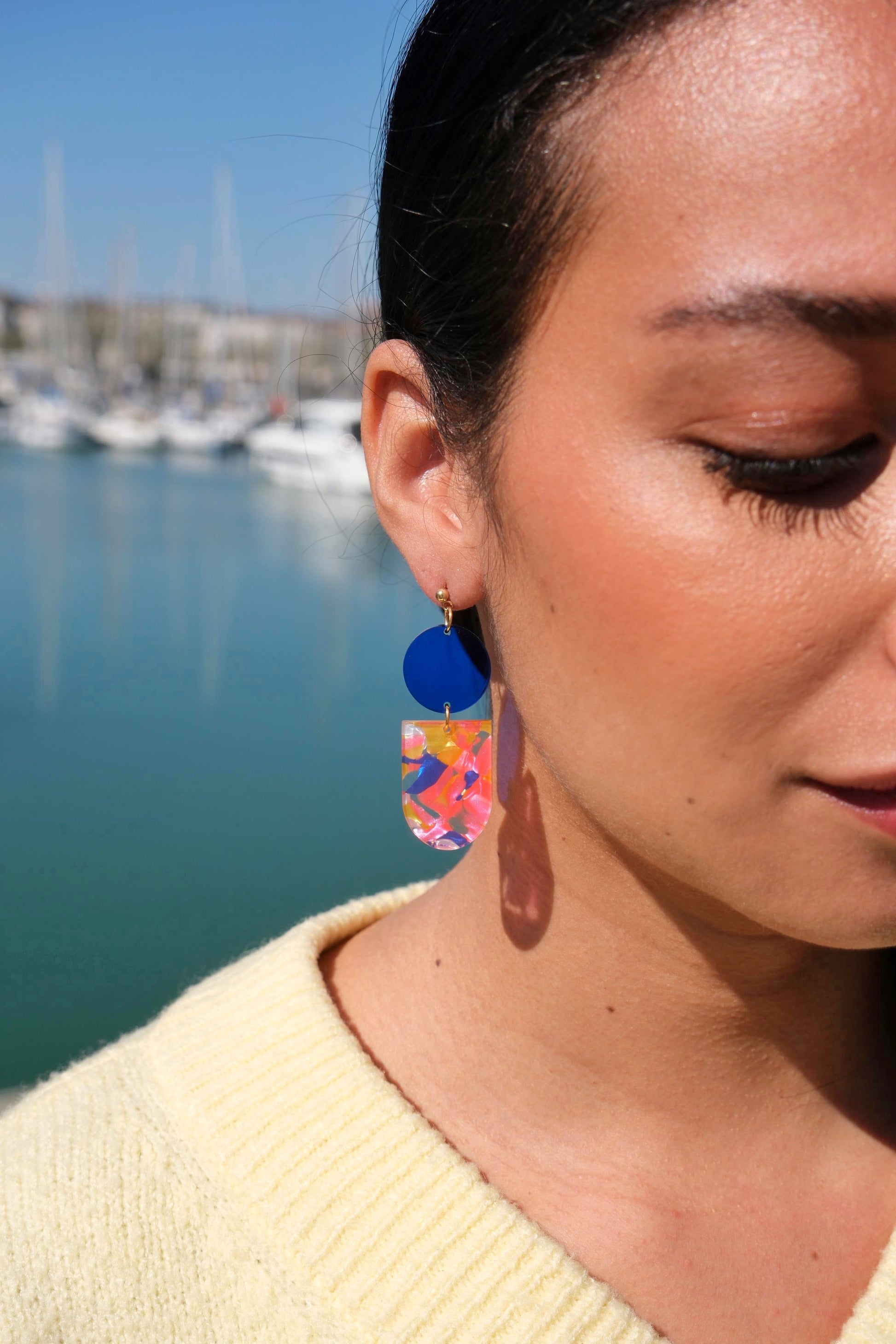 Les boucles d’oreilles Blandine apportent une touche de couleur pleine de peps et de bonne humeur 🍊✨