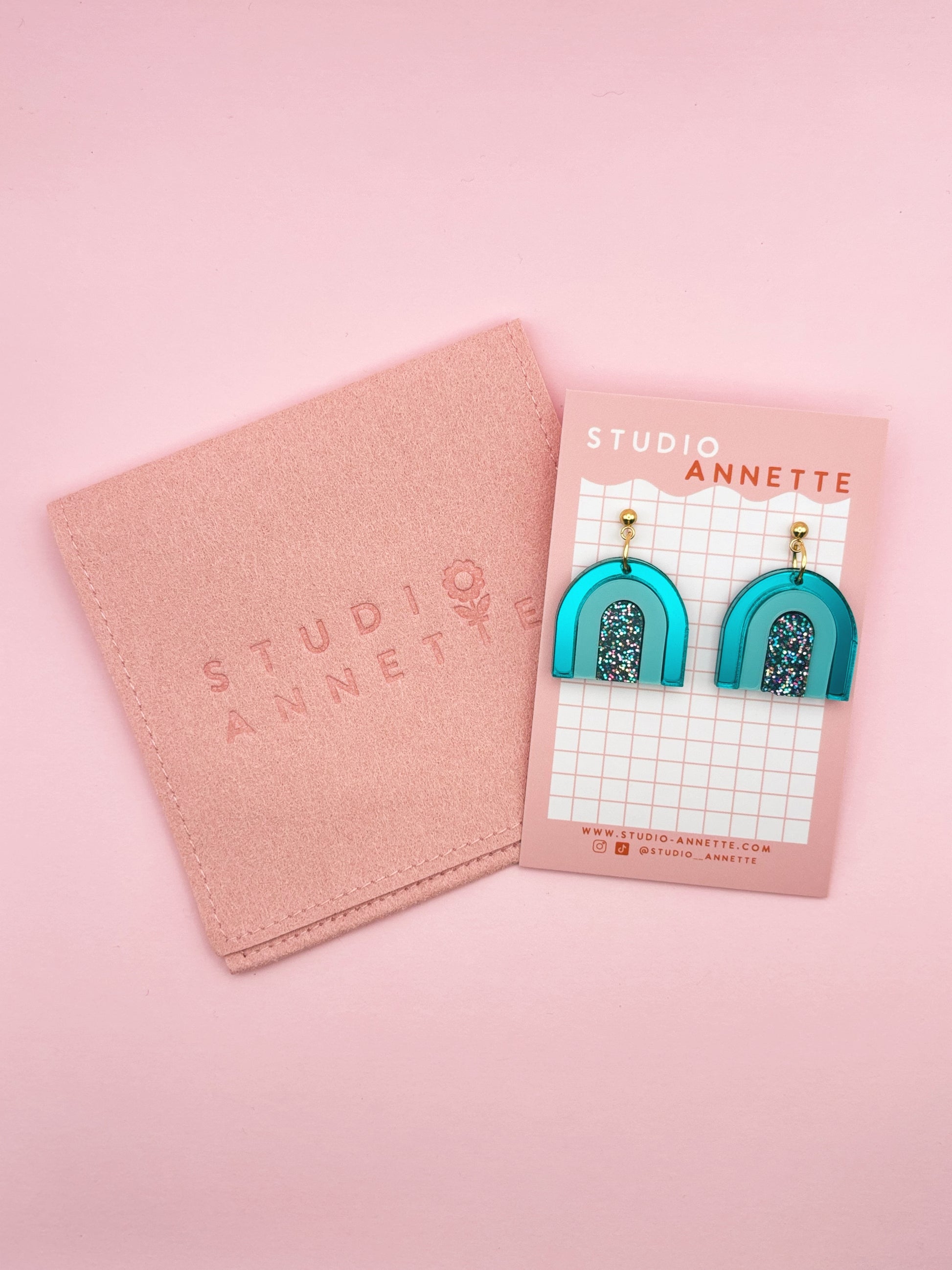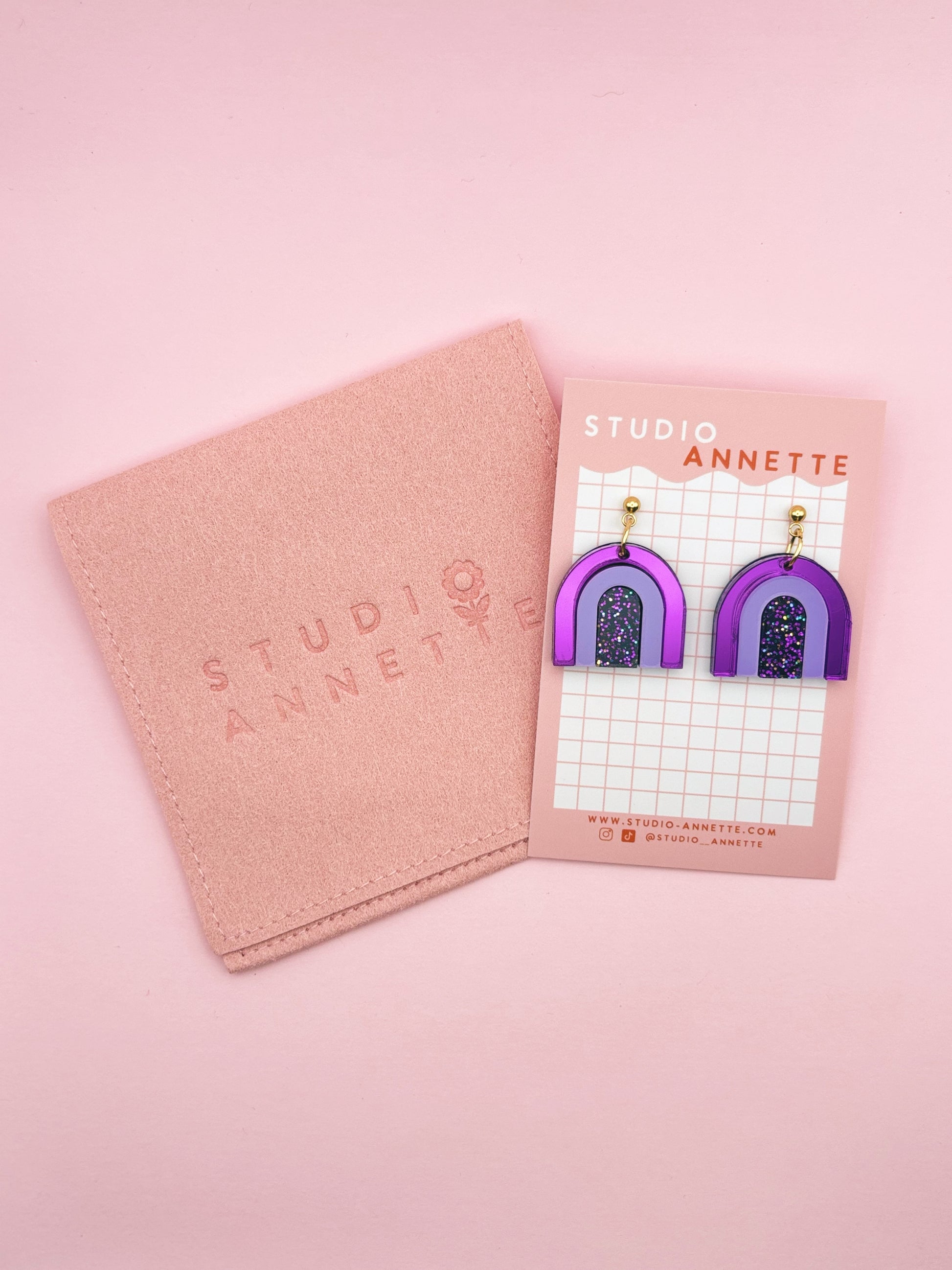 - Les boucles sont emballées dans un joli pochon en suédine rose au nom de la marque et expédiées dans une boîte customisée cartonnée